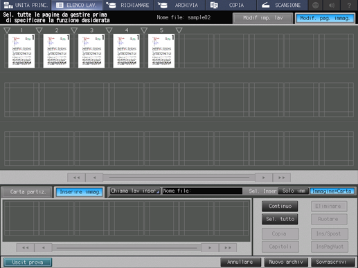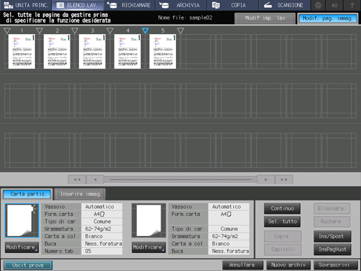 Il lavoro specificato viene richiamato ed è visualizzata la schermata [Modif. pag. immag.].