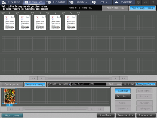 Nel campo [Inserire immag.] in basso, premere la pagina (o le pagine) da inserire.
