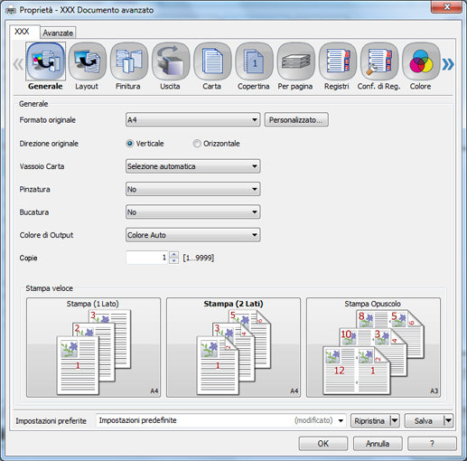 Ogni stampante può contenere diverse impostazioni lavoro.