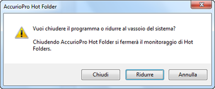 [Ridurre]: la schermata [AccurioPro Hot Folder] si chiude. Essa risiede nella barra delle applicazioni per monitorare la Hot Folder.