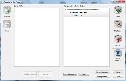 Se sono presenti hot folder configurate, esse sono visualizzate in [Hot Folder].