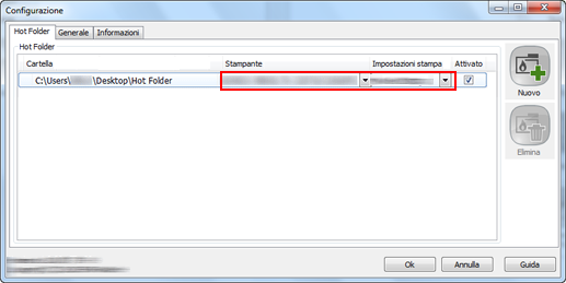 In [Hot Folder], selezionare la hot folder di destinazione. In [Stampante] e [Impostaz. stampa], selezionare la stampante richiesta per la hot folder, quindi fare clic su [OK].