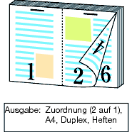 zusätzliche ErklärungDurch die Aktivierung der Option Lochen können Sie die ausgegebenen Blätter mit Abheftlöchern (2 Lochungen, 3 Lochungen, 4 Lochungen oder 4 Lochungen (Schwedisch)) versehen. Installieren Sie die Locher-Einheit PK-522 am Finisher FS-532.