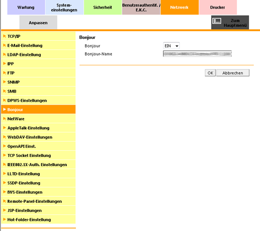 In diesem Bildschirm können Sie die Bonjour-Einstellungen einrichten.