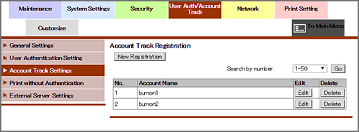 Click New Registration to register a new account, or click Edit for a desired account name to edit the data already registered.