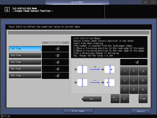 Utilice [+ / -] para seleccionar el signo positivo o negativo del valor numérico. Para cambiar [Datos actuales], pulse [Definir].