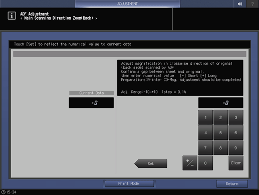 Utilice [+ / -] para seleccionar el signo positivo o negativo del valor numérico. Para cambiar [Datos actuales], pulse [Definir].