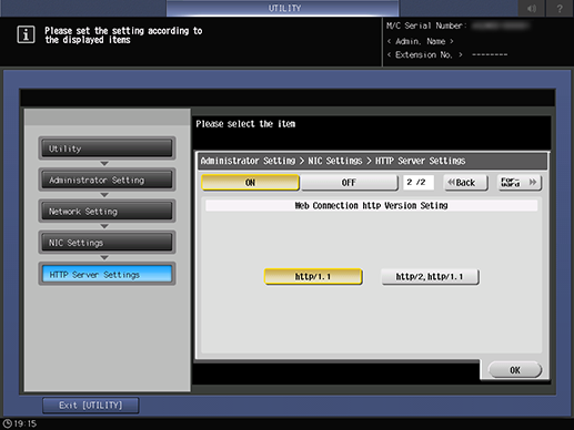 [Web Connection Conf. versión HTTP] | Seleccione la versión de http cuando utilice Web Connection. Utiliza http/2 si el destino admite http/2 cuando se selecciona [http/2, http/1.1]. Utilice http/1.1 para todos los demás. |
