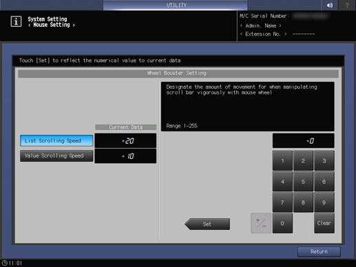 [Activado] | [Lista cant.movimiento] | Configura la cantidad de desplazamiento cuando la rueda gira rápidamente para hacer funcionar la barra de desplazamiento con la rueda del ratón. |
