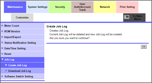 Para crear datos de registro, haga clic en [Aceptar] en la pantalla que aparece al hacer clic en [Aceptar].