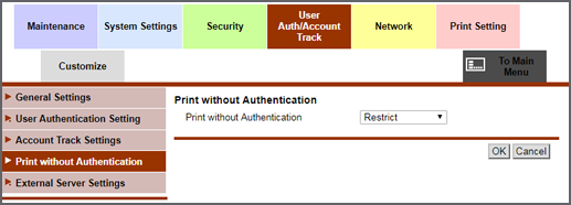 Puede configurar las opciones para permitir la impresión por parte de un usuario que no esté registrado como tal.