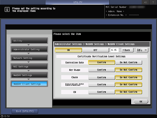 [Réglages Niveau Vérification Certificat] | [Date d'expiration] | Vérifie si le certificat a expiré lors de la vérification du certificat pendant la communication SSL. |