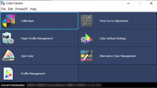 Un clic sur chacun des boutons affiche l'écran menu de la fonction Color Centro.