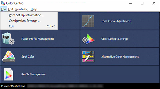 [Quitter] | Fermeture de Color Centro. Vous pouvez également cliquer sur [e] sur la page d'accueil pour quitter Color Centro. Si vous cliquez sur [Quitter] ou [e] pendant qu'un autre écran est affiché, une boîte de dialogue de confirmation s'affiche. Cliquez sur [Oui] pour quitter Color Centro.