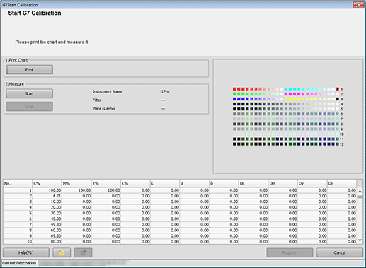 L'écran [Mesure de précision de l'étalonnage G7] s'affiche.