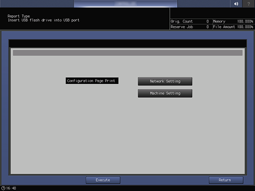 Enregistrement de l'état du réseau ou de la machine sous forme de rapport sur une clé USB.