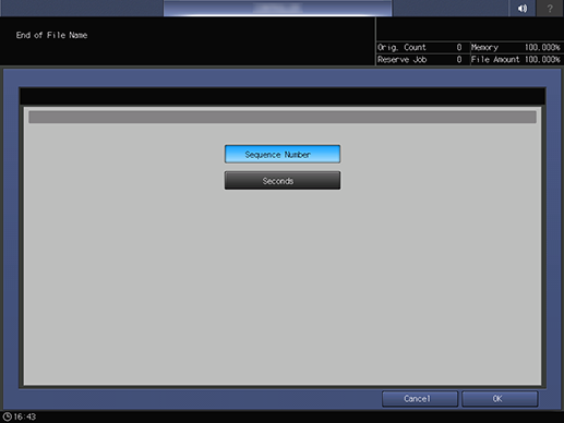 Sélection du numéro de séquence (trois chiffres) ou de secondes (deux chiffres).