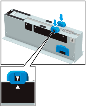 2. Fixez l'Élément de levage avant à fond dans le Guide auxiliaire inférieur.