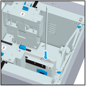 Alignez le repère , , de l'Élément de levage arrière avec le repère + du Guide auxiliaire inférieur.