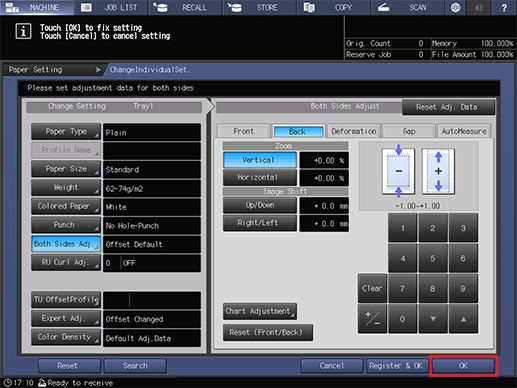 Fonction utile pour le réglage de la position image et l'agrandissement de l'image verso sur la base des résultats de sortie des données de la tâche.
