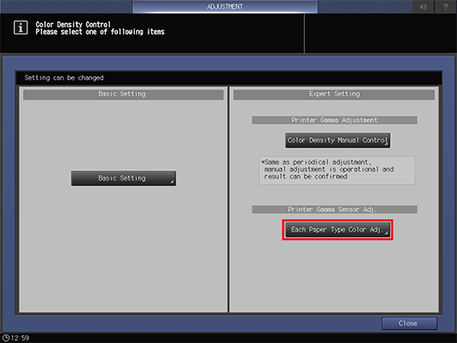 Accueil > Réglage/entretien > Réglage de la qualité de l'image > Détails d'implémentation des éléments de réglage de qualité image > [Réglage couleur type papier] (Pour l'Intelligent Quality Optimizer IQ-501)