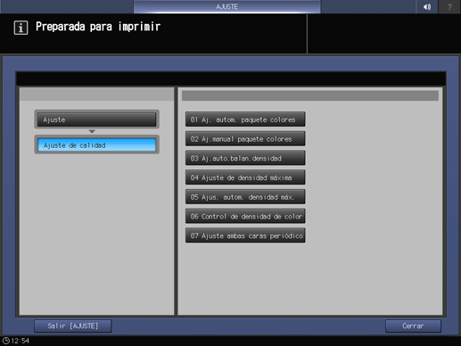 Se vuelve a mostrar la pantalla Menú Ajuste de calidad.