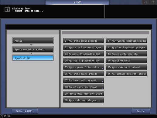 Pulse Ajuste unidad de acabado, Ajuste de SD y Aj.(fuerza) aplanado pliegue de forma consecutiva.