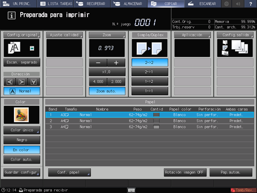 Pulse la ficha COPIAR para mostrar la pantalla COPIAR.