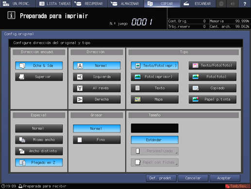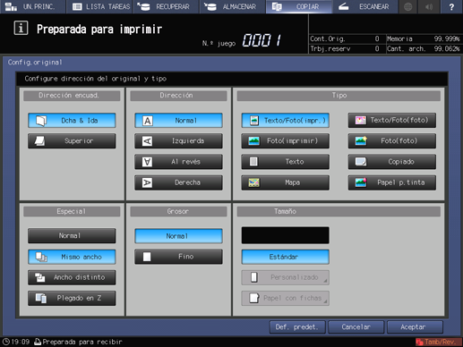 Pulse la ficha COPIAR para mostrar la pantalla COPIAR.