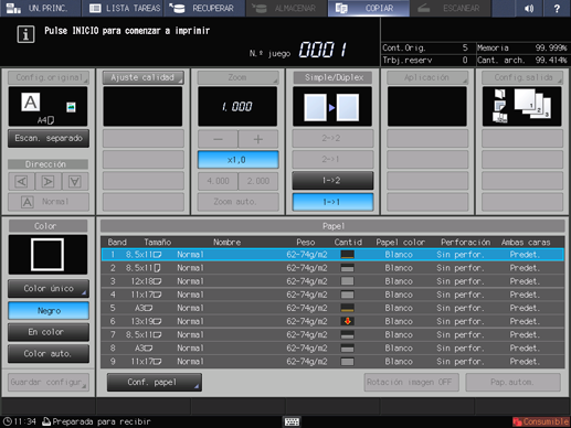 explicación adicionalEl indicador de memoria situado en la esquina superior derecha de la pantalla COPIAR le permite comprobar cuánta memoria queda.