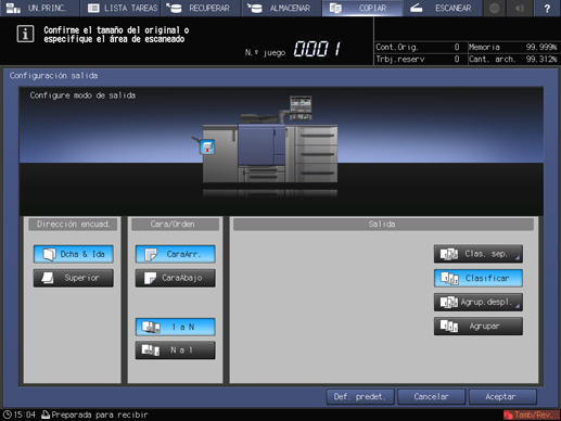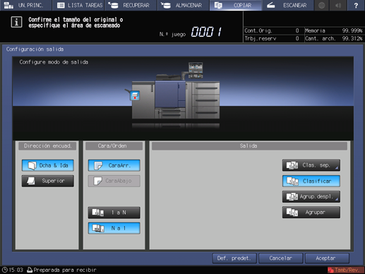 Pulse la ficha COPIAR para mostrar la pantalla COPIAR.