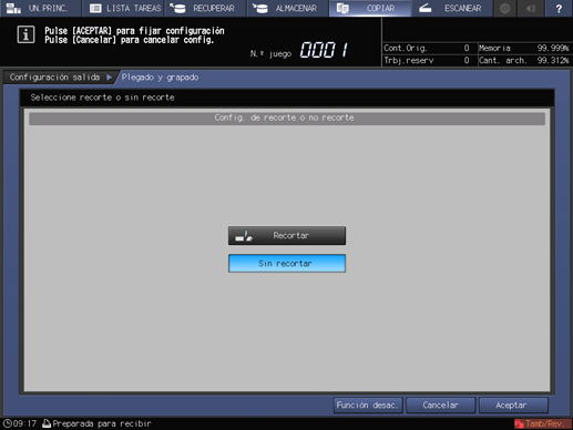 Pulse Recortar o Sin recortar para indicar si desea usar o no la función de recorte.