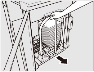 Procure retirar el carro siguiendo una línea recta. No fuerce un cambio de dirección mientras arrastra el carro. El carro solo se debe utilizar para transportar papel. No lo utilice para otras tareas. No se suba nunca al apilador de gran capacidad.