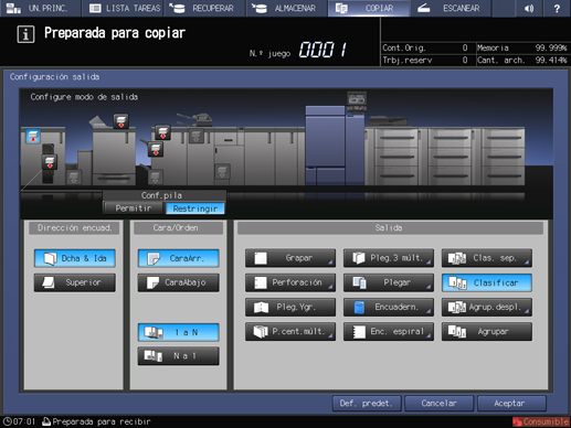 Pulse la ficha COPIAR para mostrar la pantalla COPIAR.