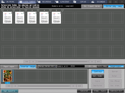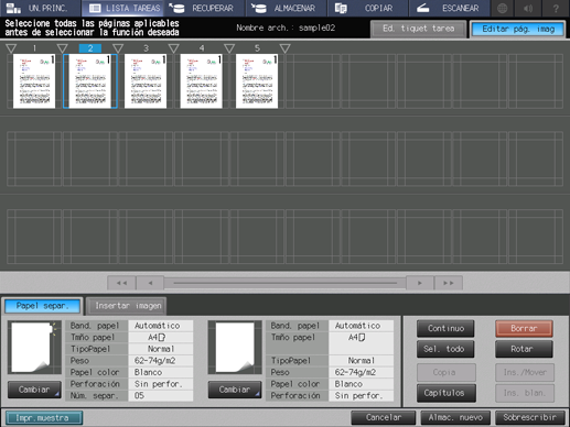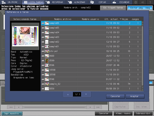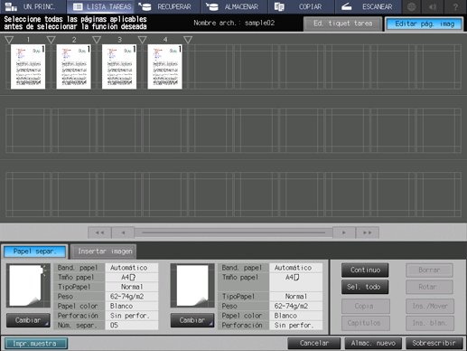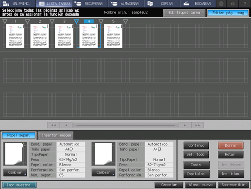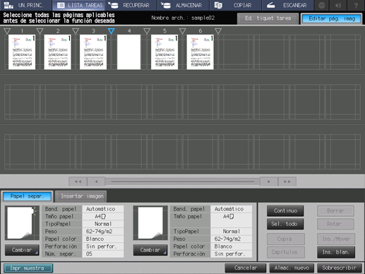 explicación adicionalCuando la tarea contenga 30 o más páginas, cambie de pantalla con (anterior) / right (siguiente) / (primera) /rightright (última), en la parte inferior de la pantalla de vista previa.