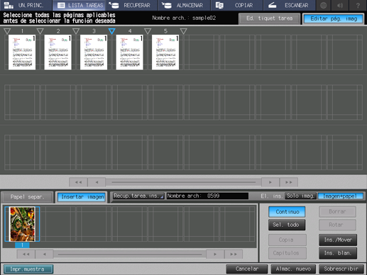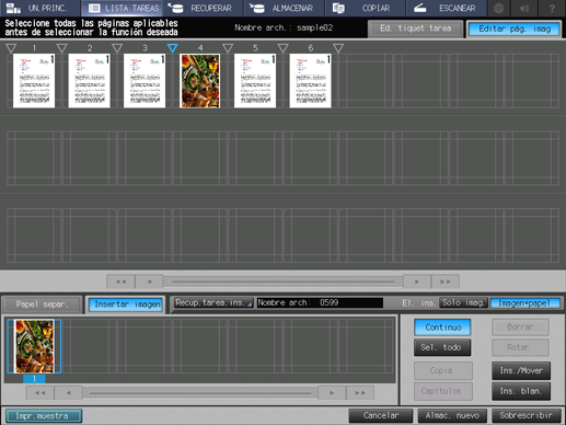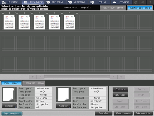 Se recupera la tarea especificada y aparece la pantalla Editar pág. imag.
