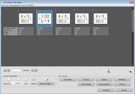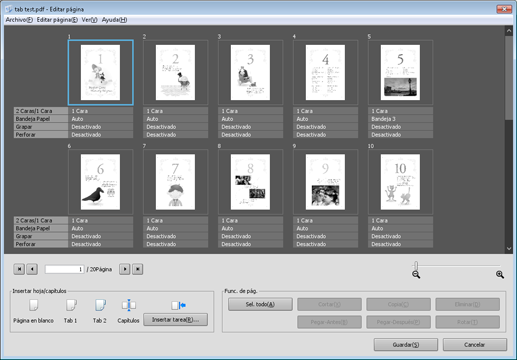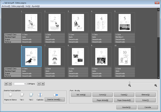 Realizar ediciones en las páginas (como copiar, mover, eliminar / configurar capítulos / insertar papel de fichas).