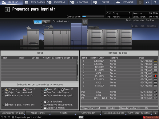 explicación adicionalTambién puede utilizarse un Tamaño papel no especificado para la bandeja, a diferencia de la pantalla Cambiar juego indiv.