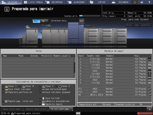 En el panel táctil del cuerpo principal, pulse right en la parte inferior derecha de la pantalla UN.PRINC.