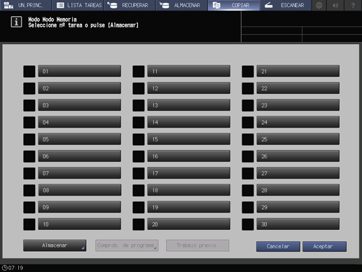7. Pulse la tecla correspondiente a la tarea y, a continuación, pulse Aceptar.