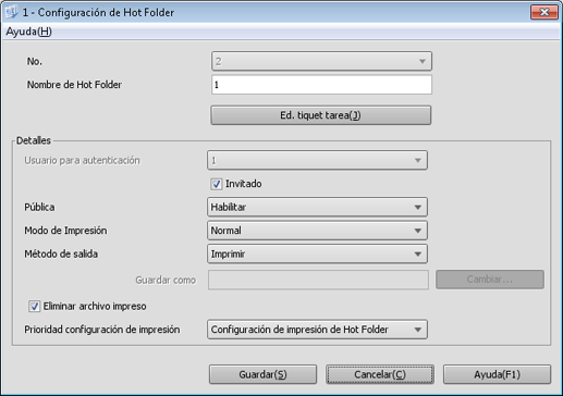 Cambiar la configuración de la Hot Folder seleccionada en la lista.