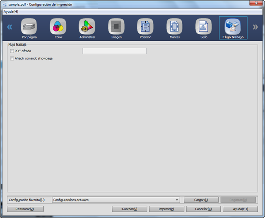 Permite definir el flujo de trabajo de la configuración de impresión.