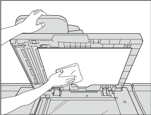 Si la cubierta de las guías del ADF no está limpia, puede que se copien marcas de suciedad o que no se detecte correctamente el tamaño del original. Limpie la cubierta de las guías del ADF con un paño suave limpio.