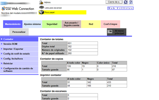 PageScope Web Connection se puede utilizar de la misma manera que un sitio web de Internet. Al hacer clic en un enlace, se abre la página de dicho enlace.