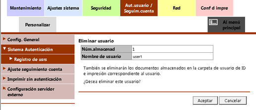 Haga clic en Aceptar en la pantalla de confirmación. Haga clic en Cancelar para cancelar la eliminación.