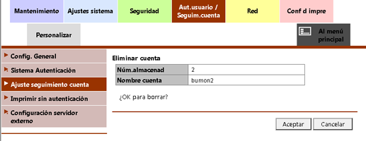 Haga clic en Aceptar en la pantalla de confirmación. Haga clic en Cancelar para cancelar la eliminación.