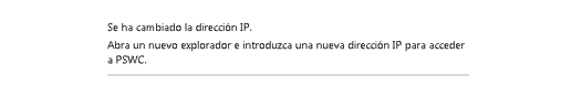 Si ha modificado la dirección IP o el Método de Definición de IP, se visualiza la siguiente pantalla.