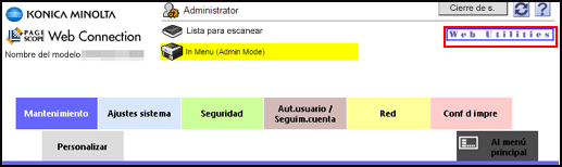 Puede acceder a Web Utilities desde la pantalla del administrador.