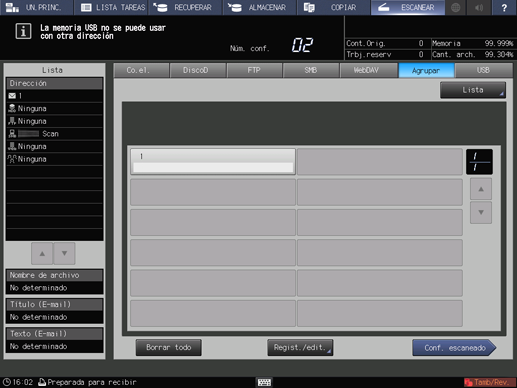 explicación adicionalPulse Editar en la pantalla Lista de direcciones de grupo para cambiar direcciones que deban registrarse en un grupo.