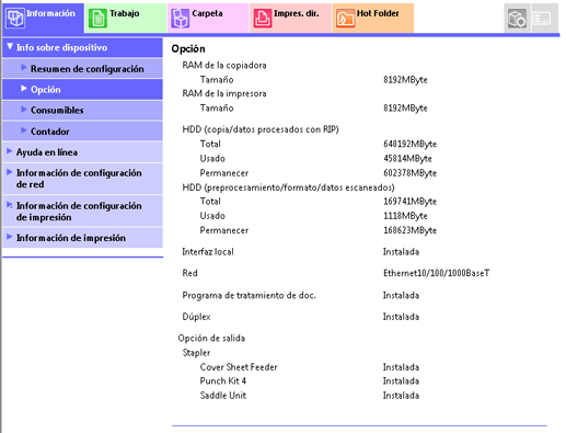 Compruebe la cantidad de espacio disponible en HDD (preprocesamiento/formato/datos escaneados) - Perm.